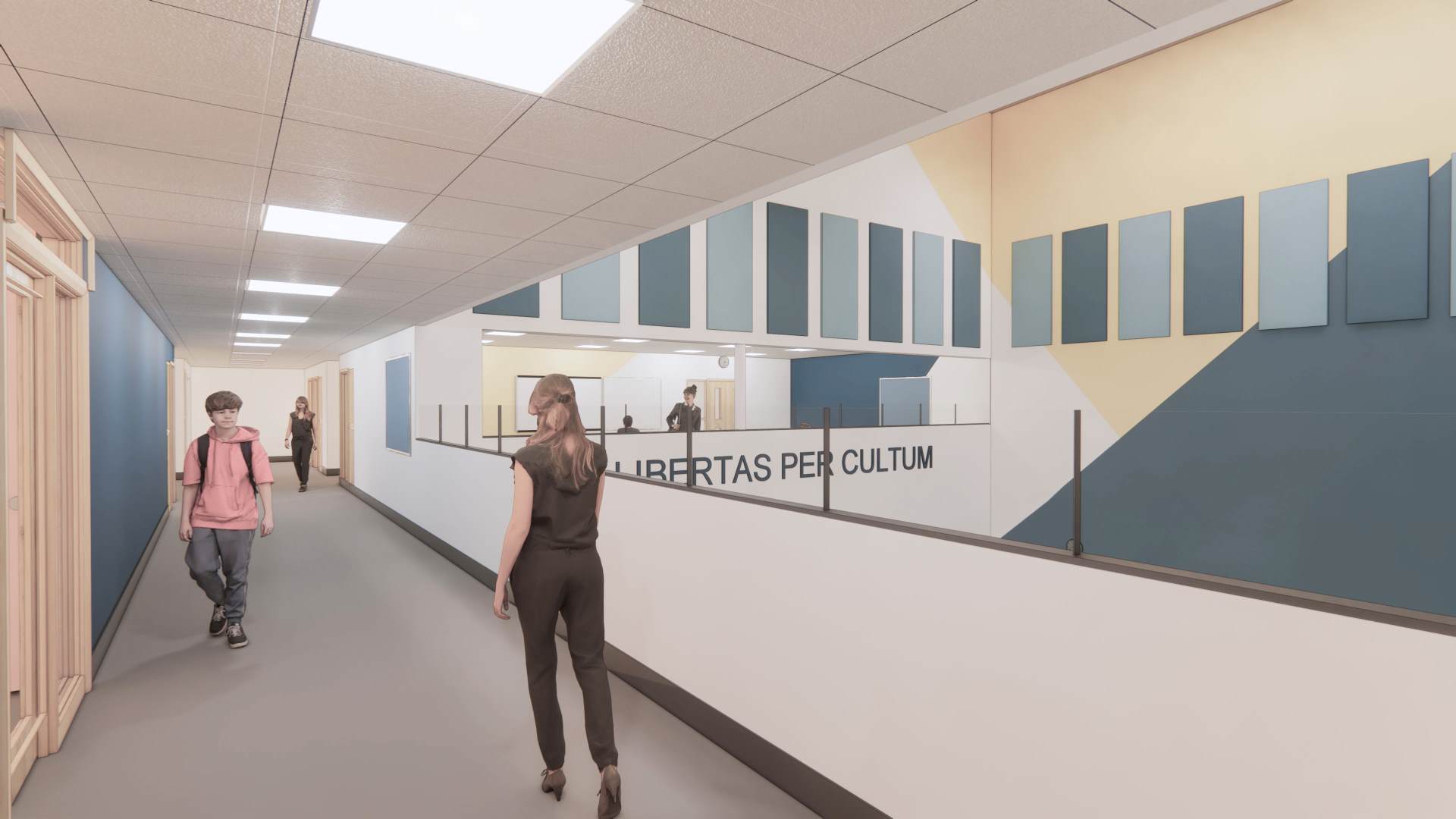Phase one consists of a new three-story building housing a variety of classrooms and facilities for our students. This building will house our Science department, Drama, Music, Library, Design and Technology departments, SEN, 6th Form, and more. This building will also house reception and be the main entrance to our school.